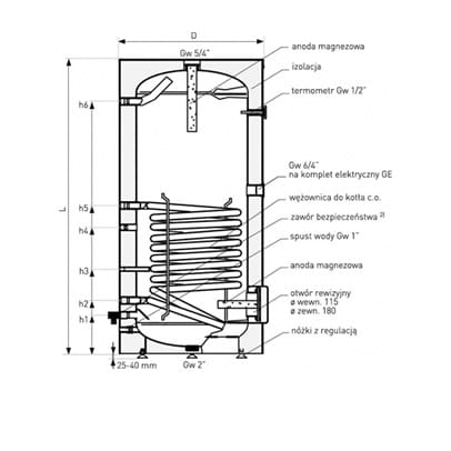 | Materiał płaszcza zbiornika | stal malowana proszkowo - emalia ceramiczna nakładana metodą na mokro - EXTRA GLASS® |
