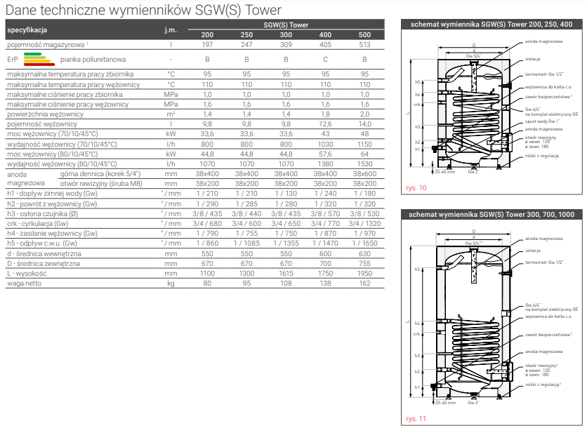 Tower, to wymiennik pionowy gwarantujący maksymalne wykorzystanie możliwości ogrzewania wody użytkowej, przez kocioł c.o. Pozwala na magazynowanie od 200 do 500 litrów wody, co zapewnia komfortowe użytkowanie ciepłej wody użytkowej przez dużą rodzinę.
