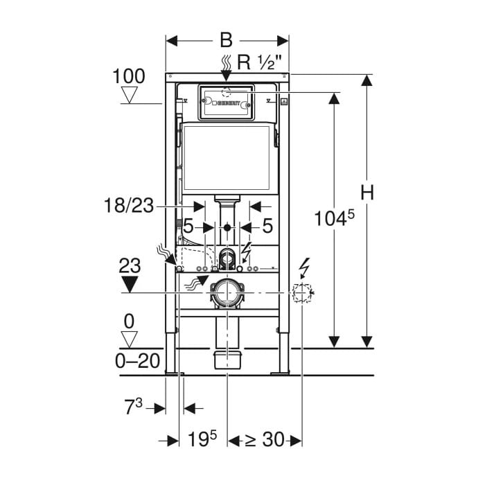 GEBERIT DUOFIX ELEMENT MONTAŻOWY DO WISZĄCYCH MISEK WC 112 CM ZE SPŁUCZKĄ PODTYNKOWĄ DELTA 12 CM I WSPORNIKAMI MONTAŻOWYMI