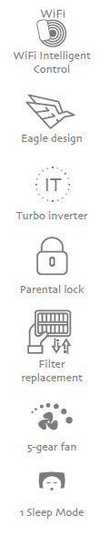 - sterowanie przez Wi-Fi (poprzez aplikację Gree+)