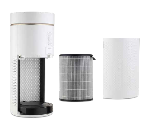 Najnowszy oczyszczacz powietrza Gree posiada nietypową budowę, która wpływa na skuteczność jego działania – zanieczyszczone powietrze czerpane jest 360° wlotem i bardziej efektywnie oczyszczane przy niskim poborze mocy (pierwsza klasa efektywności energetycznej). Model ten spełnia oczekiwania klientów poszukujących nie tylko niezawodnych, ale także urzekających swoim designem oczyszczaczy. Biały, matowy korpus posiada strukturę drobnoziarnistego piasku oraz zdobienia w kolorze szampańskiego złota, które sprawiają, że oczyszczacz Gree Eagle stanowi elegancki dodatek do każdego wnętrza.