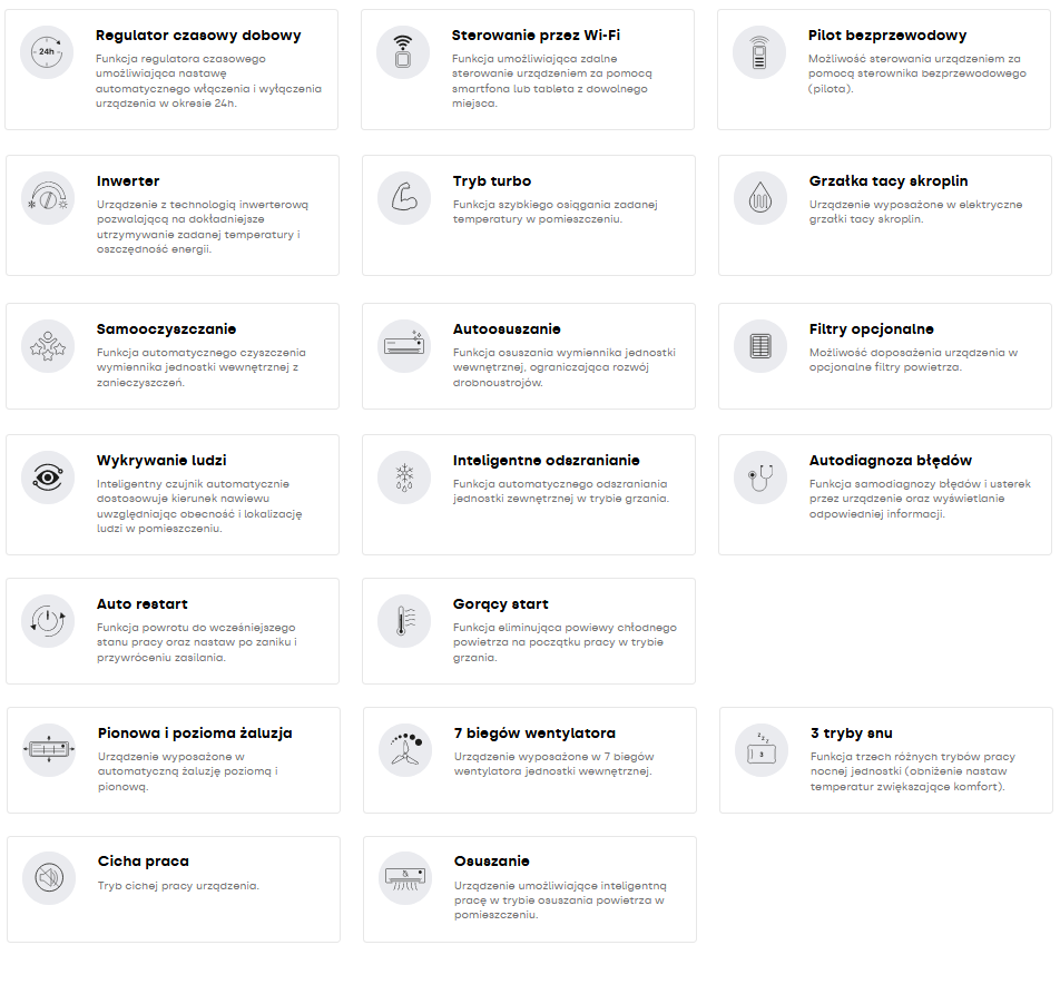 | Typ klimatyzatora | ścienny typu single split - zestaw |