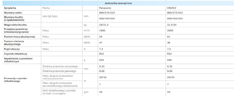 | Poziom ciśnienia akustycznego jednostki wewnętrznej dla chłodzenia min./maks. (dBA) | 17 / 39 |