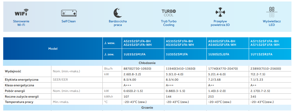 Jednostka wewnętrzna:AS71S2SF1FA-WH
