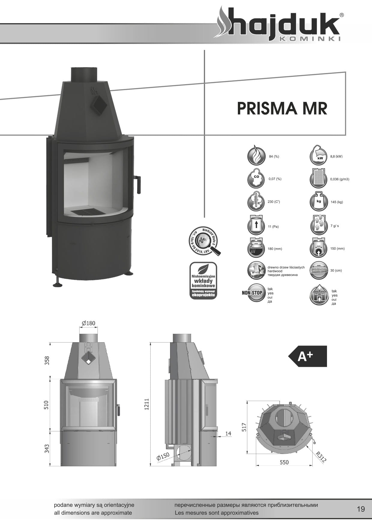 HAJDUK WKŁAD KOMINKOWY PRISMA MR 8,8kW
