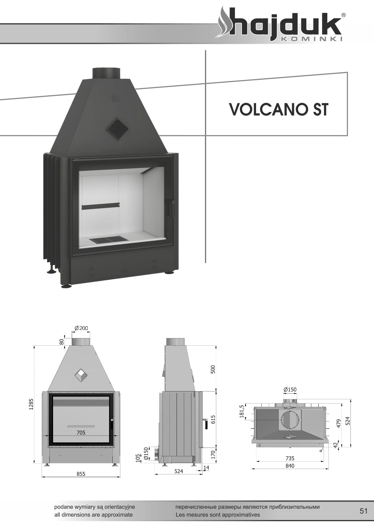 HAJDUK WKŁAD KOMINKOWY VOLCANO ST 12kW 630