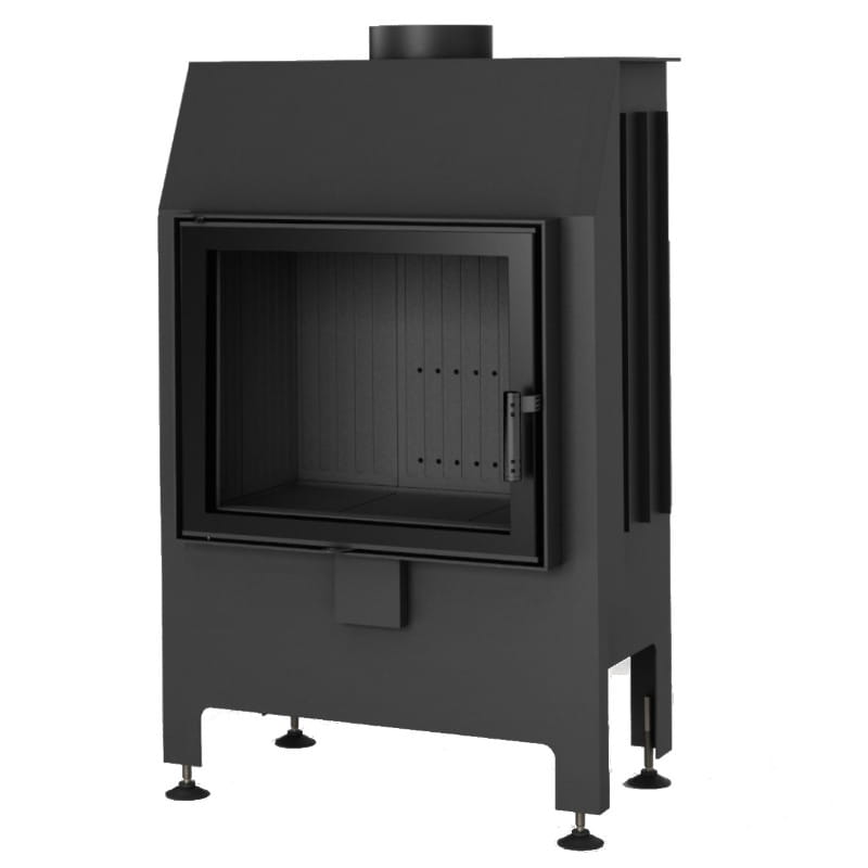 Stalowy wkład kominkowy o minimalistycznym designie wyposażony został w akumulacyjną ceramikę wykonaną w modnym czarnym kolorze. Kominek posiada wytrzymałe i nowoczesne drzwiczki o pełnym przeszkleniu z czarnym wentylowanym uchwytem do otwierania. Standardowym wyposażeniem są nóżki do regulacji wysokości wkładu, oraz króciec doprowadzenia powietrza z zewnątrz.