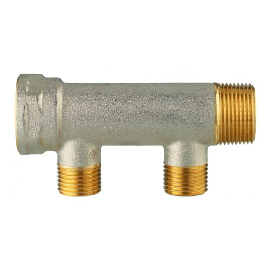 Rozdzielacz do wody pitnej, służy do połączenia punktów czerpalnych ze źródłem ciepłej i zimnej wody. Od strony wlotu gwint zewnętrzny R 3/4, od strony wylotu gwint wewnętrzny Rp 3/4, rozstaw króćców wyjściowych 50 mm. Możliwe łączenie kilku rozdzielaczy. Maksymalne ciśnienie robocze: 10 bar.