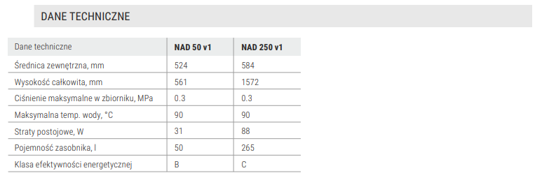| Typ | zasobnik bez wężownicy |