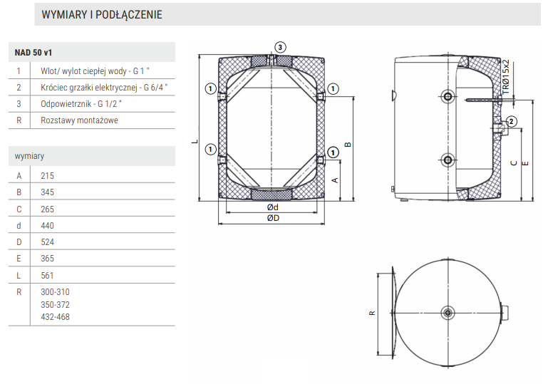 Zasobnik buforowy wody grzewczej NAD 250 v1 o pojemności 265 litrów przeznaczony jest w szczególności do pracy w zamkniętych układach grzewczych z pompami ciepła typu powietrze/woda.Zasobnik spełnia funkcję bufora ciepła i sprzęgła hydraulicznego istotnego dla zapewnienia stabilnej pracy pompy ciepła, w tym: ograniczenia liczby rozruchów i spełnienia warunku minimalnego natężenia przepływu wody, szczególnie przy ograniczaniu odbioru ciepła w systemie grzewczym przez zawory regulacyjne.