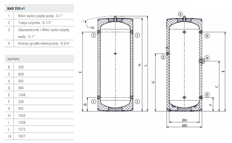 HEWALEX NAD 250 v1 BUFOR DO POMP CIEPŁA 250 L Z GNIAZDEM POD GRZAŁKĘ ELEKTRYCZNĄ POLIURETAN 81.50.08