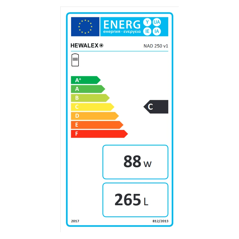 | Klasa efektywności energetycznej podgrzewania wody | C |