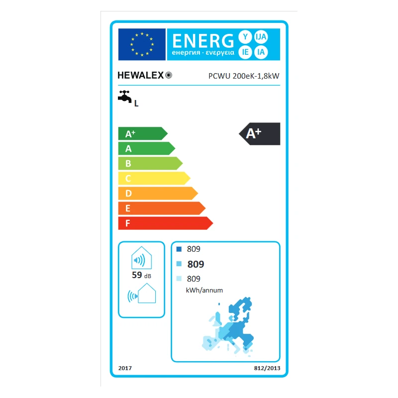 Pompa ciepła korzystając w większej części z energii odnawialnej, zapewnia niskiekoszty podgrzewania ciepłej wody użytkowej. Pompa ciepła PCWU 200eK-1,8kW wyróżnia się najwyższą stosowaną obecnie klasą efektywności energetycznej:A+