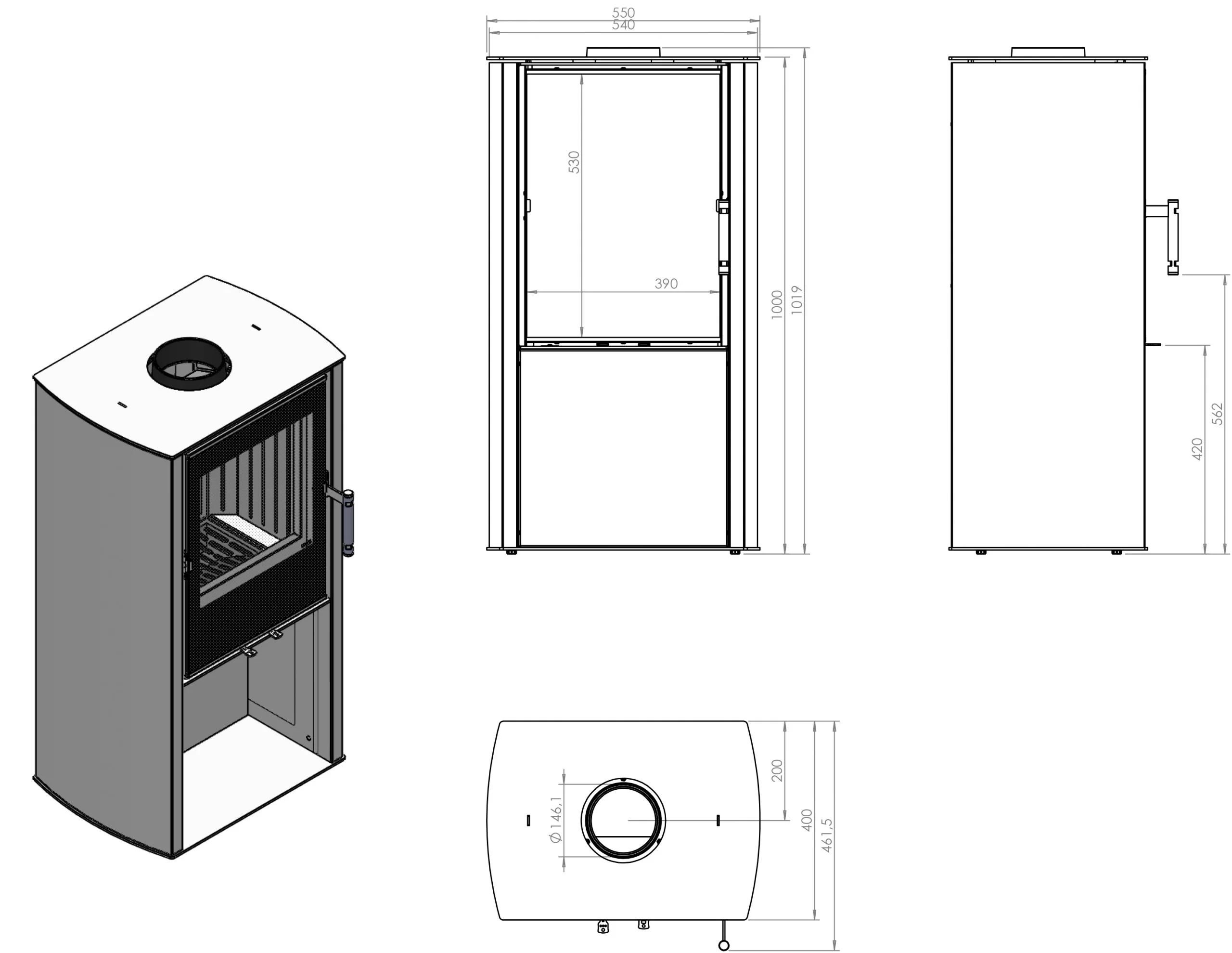 Piec wolnostojący CANE S opalany drewnem – dodatkowe informacje