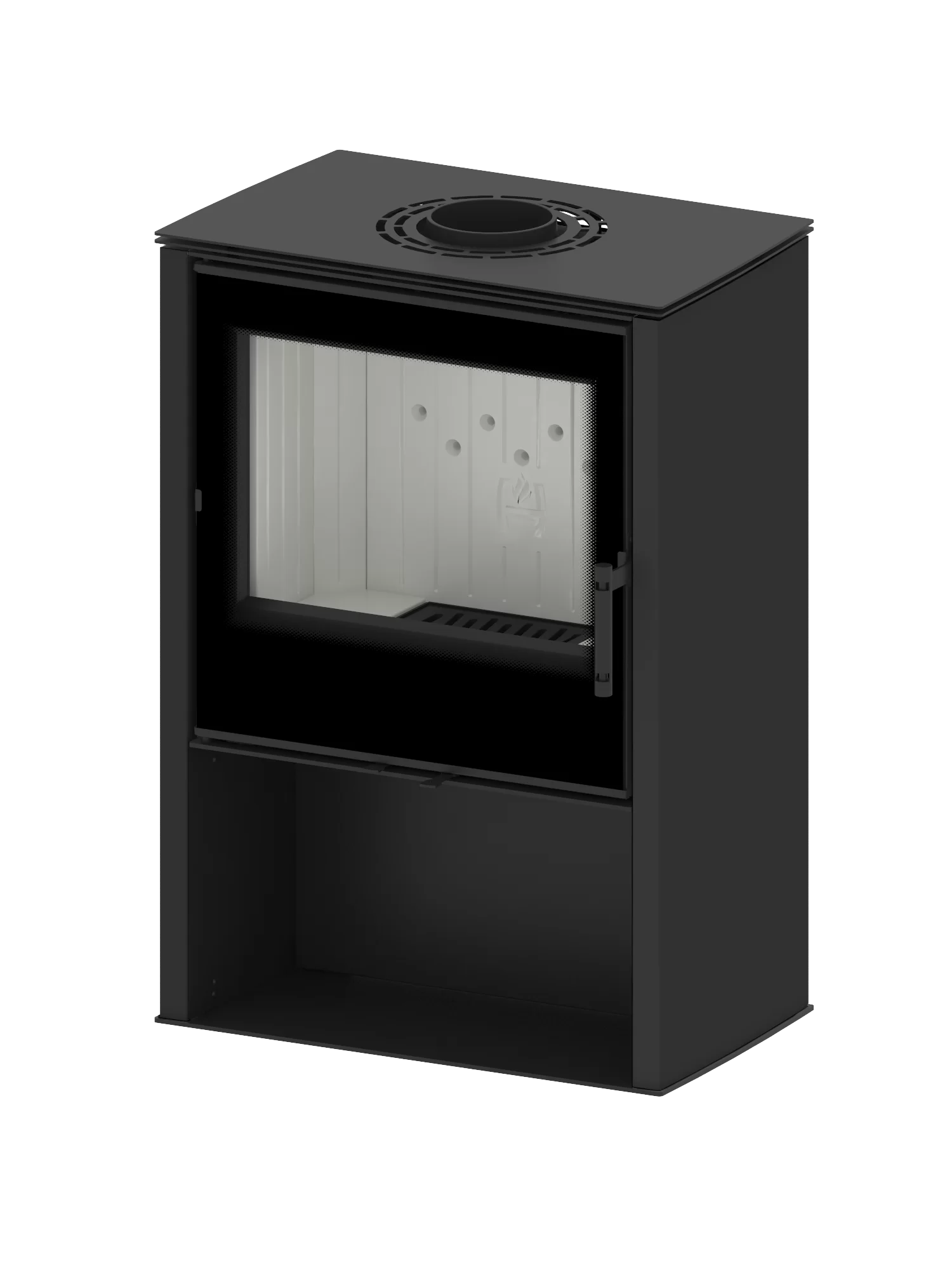 Zastosowanie wytrzymałego, żeliwnego rusztu gwarantuje długą żywotność. Bezpośrednio pod rusztem znajduje się łatwo demontowalny popielnik charakteryzujący się ponadprzeciętną objętością. Konstrukcjakominka wolnostojącego LUPO Mumożliwia montaż wylotu spalin zarówno do tylnej, jak i górnej ściany.