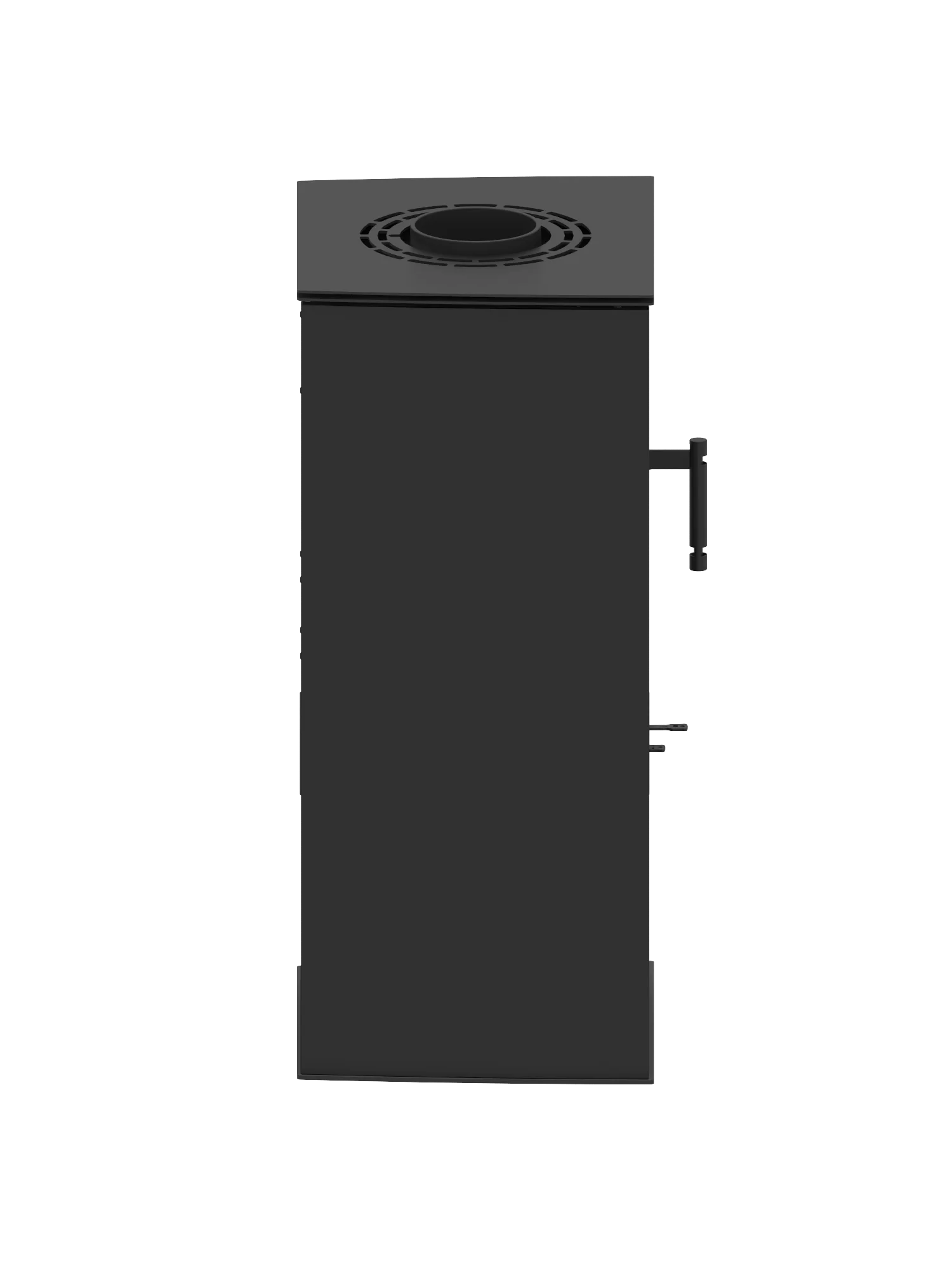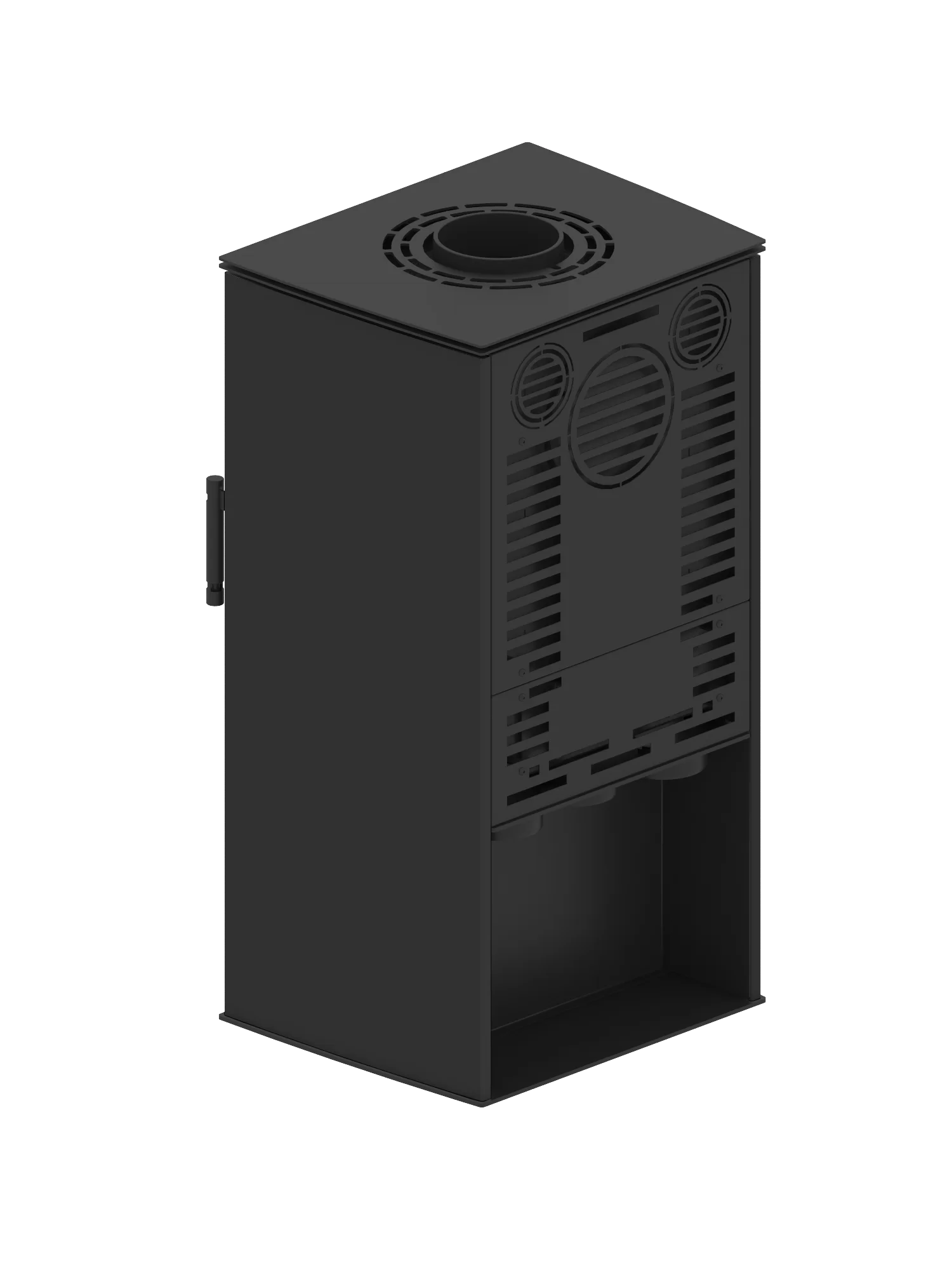 Najmniejszy piec opalany drewnem z serii LUPO, czyli model S jest wyposażony w łatwo wyjmowany popielnik zapewniający komfortowe użytkowanie. Bezpośrednio nad nim znajduje się solidny ruszt wykonany z żeliwa. Sposób montażu wylotu spalin może być dostosowany do indywidualnych potrzeb użytkownik. Konstrukcja kominka wolnostojącego umożliwiają podłączenie wylotu spalin zarówno w tylnej, jak i w górnej części solidnego korpusu.