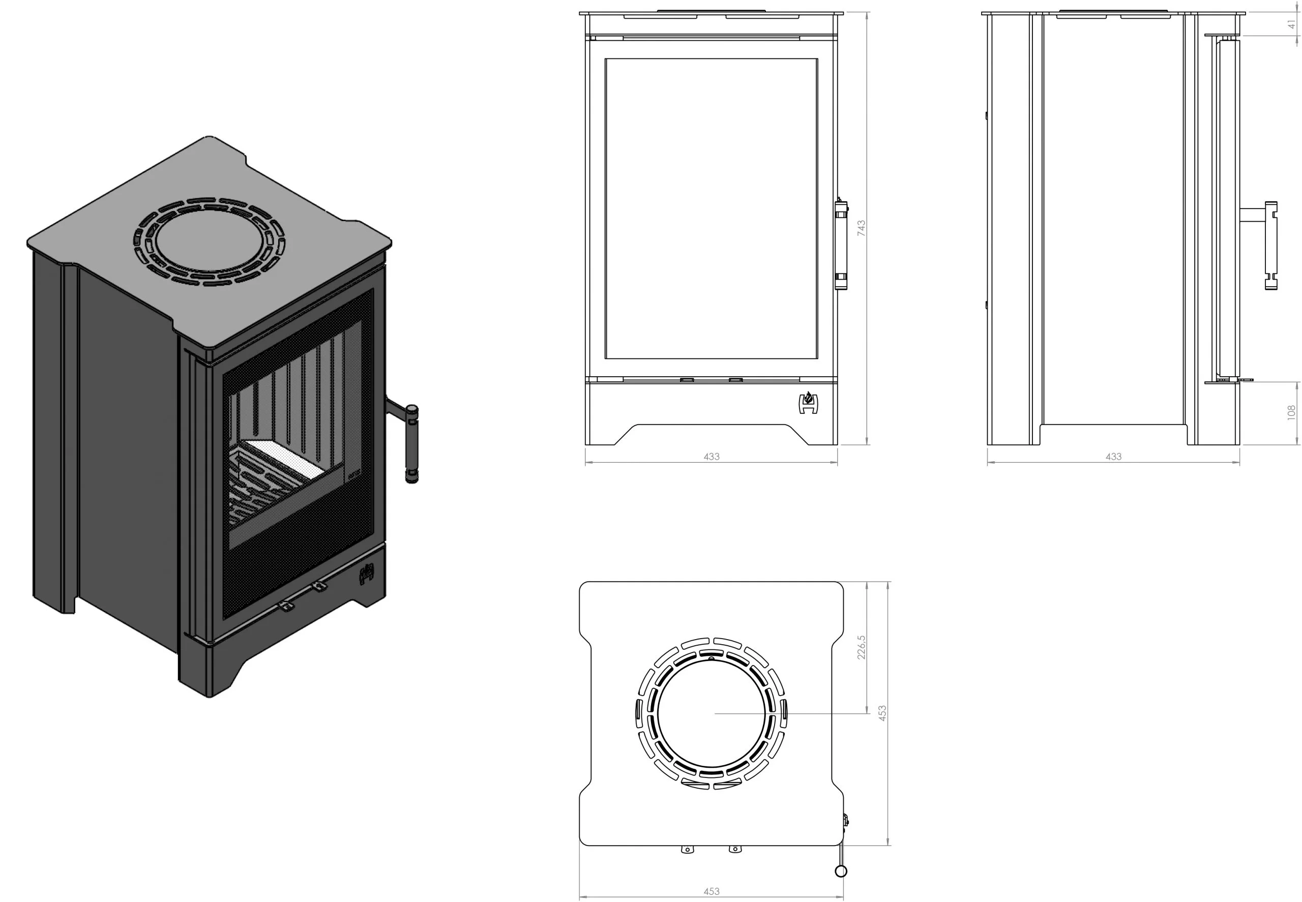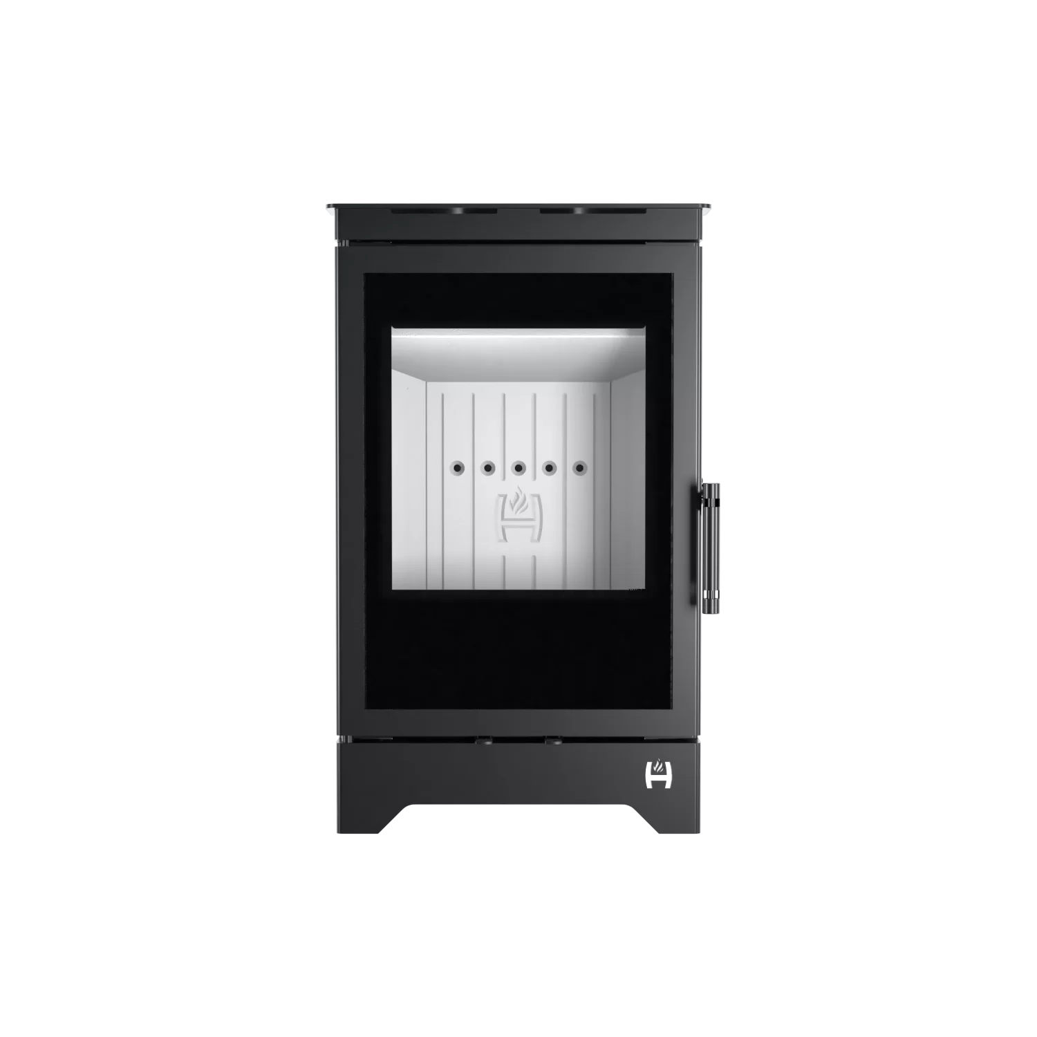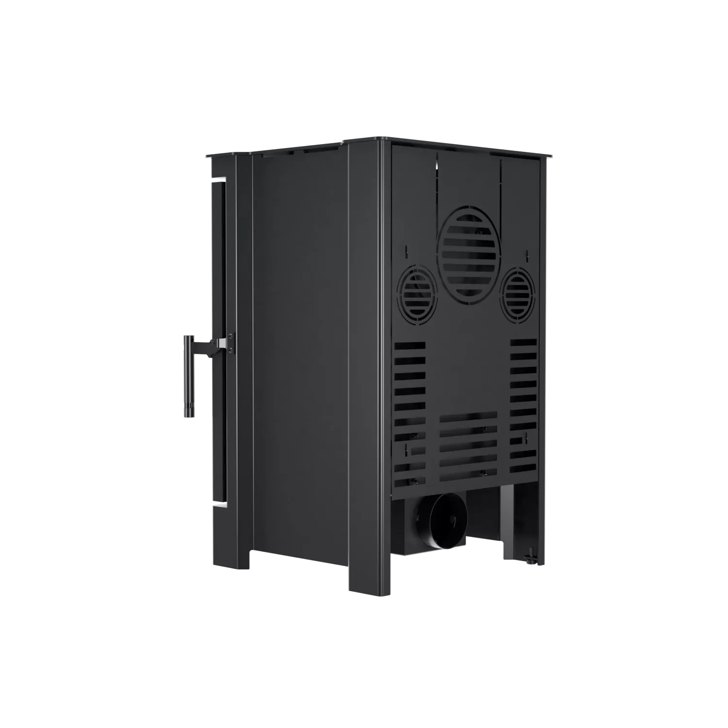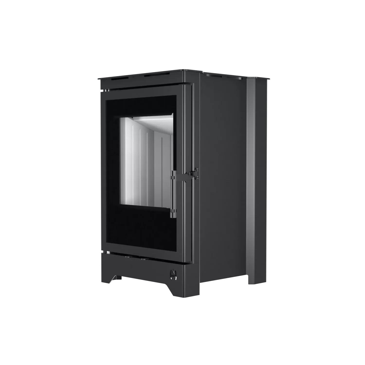 Kominek wolnostojącyLYNX B, tonowoczesny minimalistycznyogrzewaczna drewno, cechujący sięwysoką sprawnością cieplną i czystym, ekologicznym spalaniem.Piec wolnostojącyposiada uproszczoną konstrukcję zewnętrzną i mały gabaryt, dzięki czemu może być z powodzeniem instalowany jakokominek wolnostojącyw przestrzeniach otwartych, lub we wnęce ściennej z zachowaniem odpowiednich dylatacji pomiędzy ścianą, a jego korpusem.Piec wolnostojącywykonany jest z blachy kotłowej P265GH, co zwiększa jego wytrzymałość na duże temperatury, a zastosowana wysokotemperaturowa farba kominkowa wysokiej jakości, zapewnia równomierny kolor na całej powierzchni urządzenia.Koza wolnostojącaLYNX B, posiada zamkniętą komorę spalania i możliwości zainstalowania króćca zewnętrznego dolotu powietrza, dzięki czemu może być instalowana w domach posiadających wentylację mechaniczną (rekuperacja).