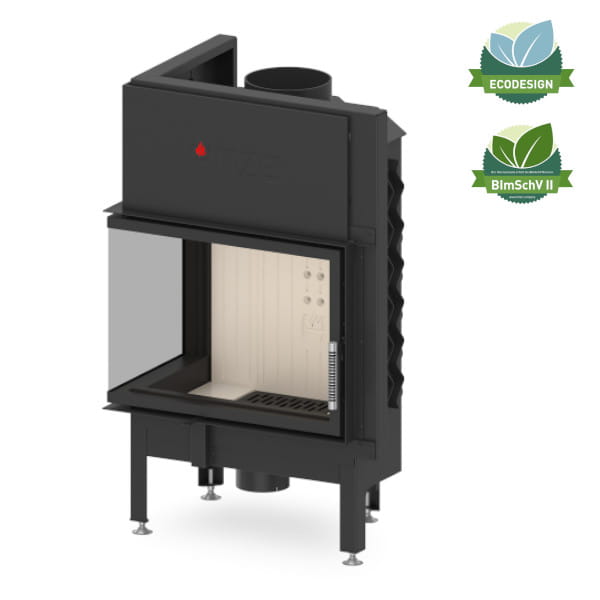 HITZE POWIETRZNY WKŁAD KOMINKOWY ALBERO AL11L.H-DBI – LEWY POZIOMY Z SZYBĄ DECOR ŁĄCZONĄ I WEWNĘTRZNĄ GIĘTĄ 11 KW