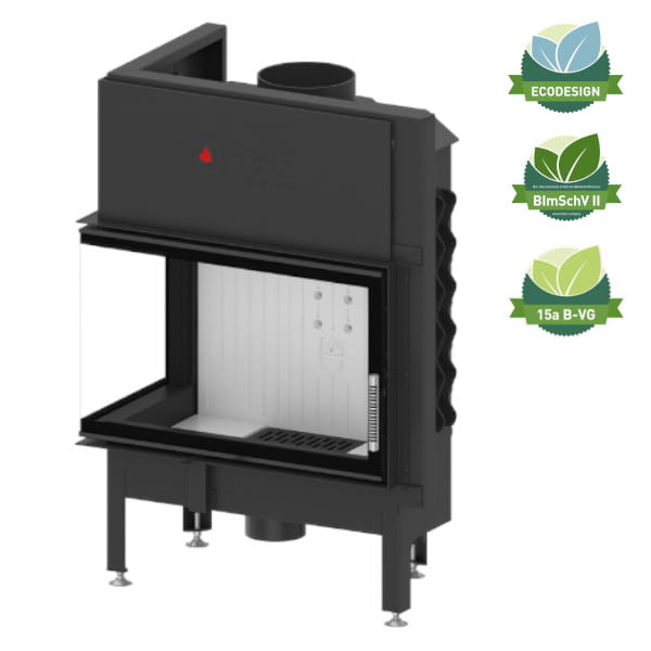 HITZE POWIETRZNY WKŁAD KOMINKOWY ALBERO AL14L.H-DBI – LEWY POZIOMY Z SZYBĄ DECOR ŁĄCZONĄ I WEWNĘTRZNĄ GIĘTĄ 14 KW
