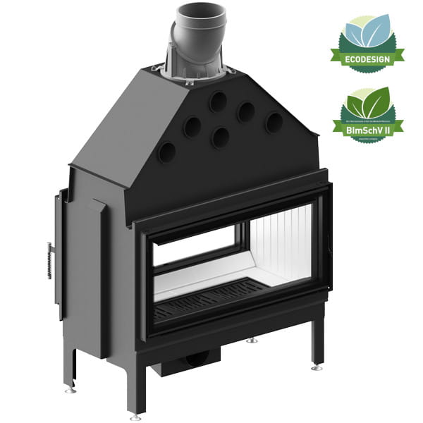 - Wkład z powiększoną, głęboką prostokątna komorą spalania dająca możliwość dużych załadunków.