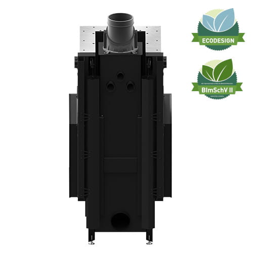 - Poprawa parametrów spalania oraz sprawności dzięki wyłożeniu komory spalania ogniotrwałymi ceramicznymi panelami z betonu ceramicznego akumulującymi ciepło w komorze spalania. Otwory w tylnej ścianie paleniska to niezależnie dopowietrzony system dopalania spalin.
