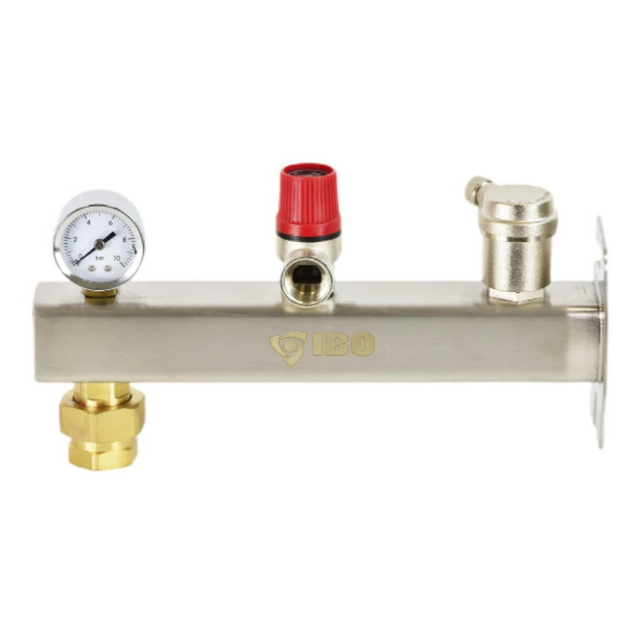 Grupa bezpieczeństwa IBO IGB to specjalistyczne urządzenie zaprojektowane w celu zabezpieczenia instalacji grzewczych przed nadmiernym wzrostem ciśnienia. Jest ona stosowana do montażu naczynia przeponowego oraz do kontrolowania poziomu ciśnienia w systemie, co zapewnia bezpieczną i stabilną pracę instalacji. Wyposażenie grupy obejmuje manometr, odpowietrznik automatyczny, zawór bezpieczeństwa oraz zawór serwisowy, które wspólnie dbają o efektywną ochronę systemu.
