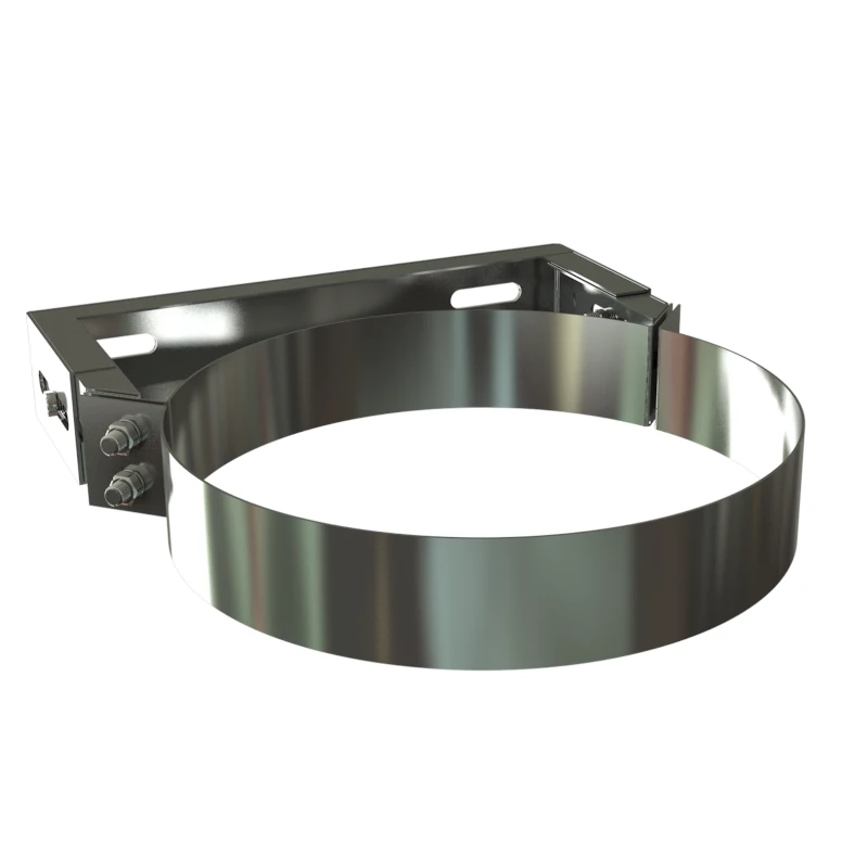 Obejma ścienna do montażu komina izolowanego do ściany; stosować razem ze wspornikami obejmy IWSO; Uwaga: w przypadku komina izolowanego średnicę należy dobrać do płaszcza zewnętrznego komina (+100mm do średnicy nominalnej); stosować co 2 metry. Wykonanie z blachy nierdzewnej 0,6mm; dostępne średnice: 250, 280, 300, 350, 400, 450, 500, 550, 600mm;