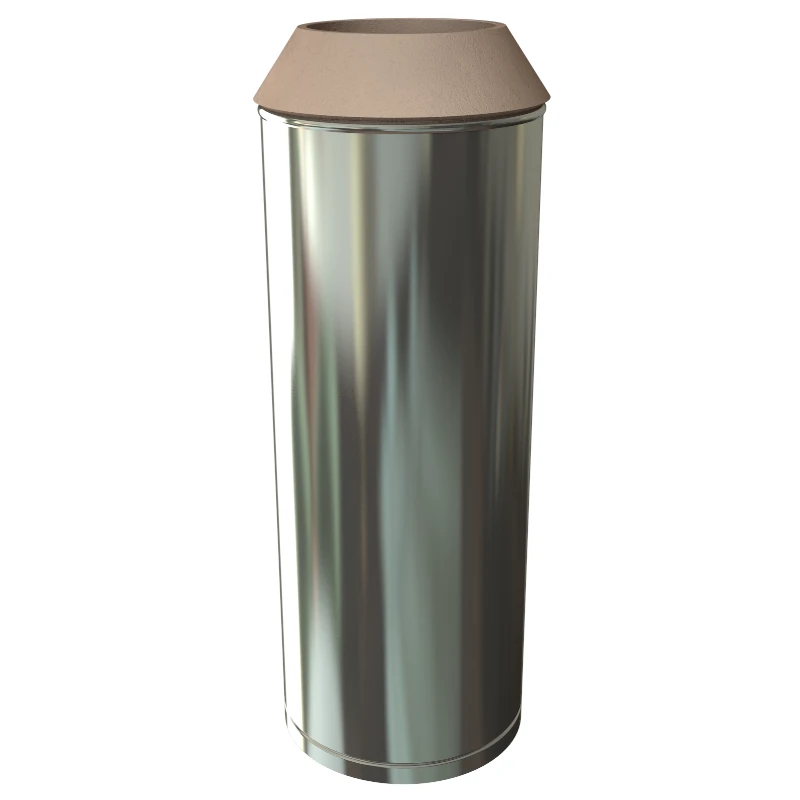 Pozwala na zabezpieczenie izolacji od góry w przypadku zakończenia komina. Płaszcz wewnętrzny: ceramika izostatyczna; izolacja glinokrzemianowa; płaszcz zewnętrzny z blachy nierdzewnej 0,6mm; dostępne średnice płaszcza wewnętrznego: 120, 140, 160, 180, 200, 250mm;