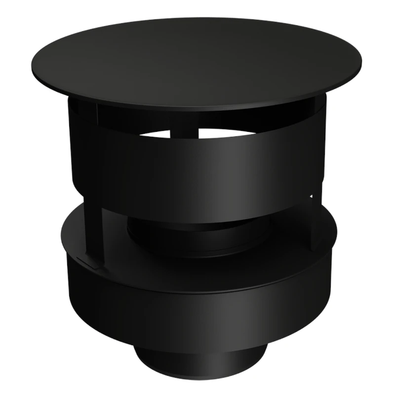 Daszek komina Smooth chroni wnętrze komina przed odpadami atmosferycznymi. Płaszcz wewnętrzny z blachy kwasoodpornej 0,5 – 0,6mm; płaszcz zewnętrzny spęczany z blachy nierdzewnej 0,6mm malowany proszkowo na kolor czarny; dostępne średnice płaszcza wewnętrznego: 130, 150, 180, 200mm