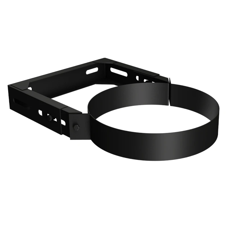 Służą do montażu komina Smooth i Aero do ściany. Wykonanie z blachy nierdzewnej 0,6mm i 1,5mm malowanej proszkowo na kolor czarny; dostępne zakresy odległości od ściany: 50-125mm i 125-200mm
