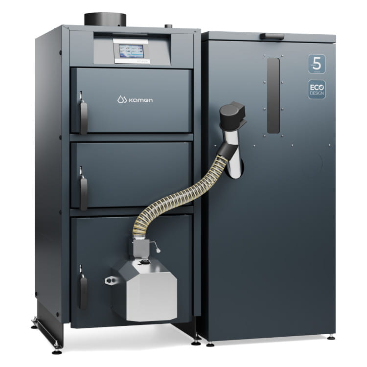 KAMEN PELLET KOMPAKT KOCIOŁ PELLETOWY O WYSOKIEJ SPRAWNOŚCI DO 92,7% KW 25 KW – ZASOBNIK PO PRAWEJ STRONIE