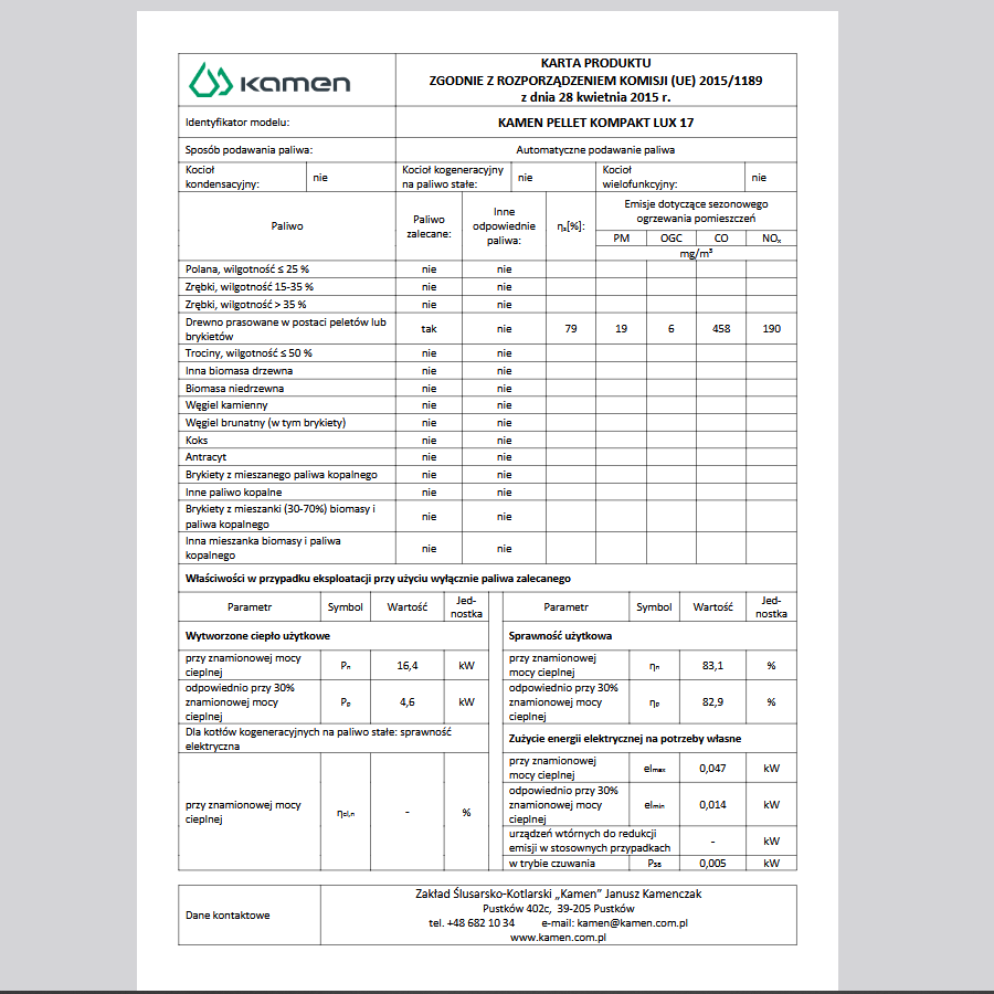 | Parametr | Jedn. | Pellet Kompakt LUX | |||