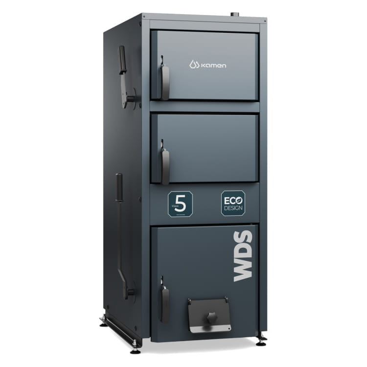 Kamen WDS tosolidny, wydajny kocioł nalata. Jego zwarta konstrukcja, mimo dużego paleniska iwygodnego szerokiego zasypu, znakomicie poprawia jego ustawność, nawet wniewielkiej kotłowni. Wysoka sprawność cieplna iniska emisyjność pozycjonują WDS wklasie 5 zcertyfikatem Ecodesign.