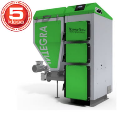 Kotły stanowią konstrukcję stalową spawaną z atestowanych blach kotłowych o grubości 6 mm, gwarantujących długotrwałe użytkowanie. Przeznaczone są do spalania eko-groszku o granulacji 5-25 mm. Obsługa kotła ogranicza się do rozpalenia paleniska automatycznego oraz usuwania popiołu. Automatyczne palenisko zasilane jest cyklicznie niewielkimi porcjami paliwa bezpośrednio na ruszt retortowy, zaś wentylator nadmuchowy dostarcza precyzyjnie dobraną ilość powietrza w określone strefy paleniska. Pozwala to uzyskać wysoką efektywność procesu spalania oraz niezwykle niską emisje substancji szkodliwych do atmosfery. Nad prawidłowym przebiegiem procesu spalania i utrzymaniem zadanej temperatury kotła czuwa mikroprocesowy regulator z innowacyjnym oprogramowaniem.