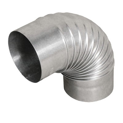Kolano FAL o stałym kącie zgięcia 90 S, zawijane na zakładkę, przeznaczone do odprowadzania spalin z urządzeń opalanych gazem lub olejem opałowym do przewodów kominowych. Kolano wykonane z czarnej blachy stalowej aluminizowanej.