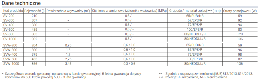 Zbiorniki buforowe c.o. – nieemaliowane o pojemnościach od 200 do 1000 litrów. Doskonale nadają się do gromadzenia ciepła z kilku źródeł, np. z 2 kotłów i instalacji solarnej. Dostępne są w wersjach:SV– zbiornik buforowy, nieemaliowany,SVW– zbiornik buforowy, nieemaliowany z wężownicą.