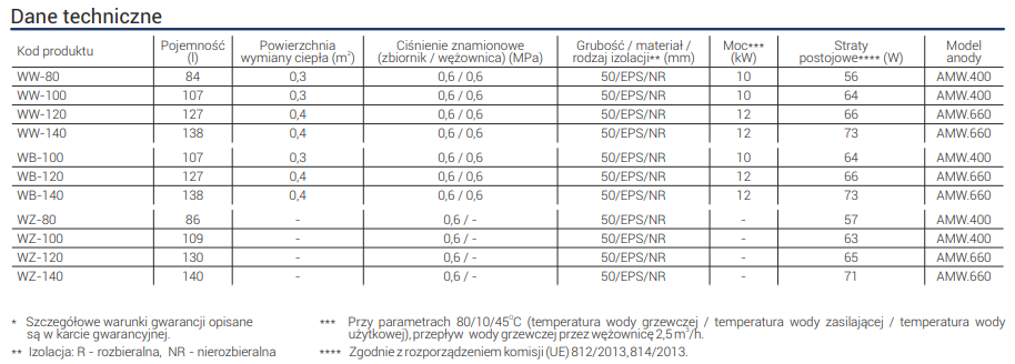 | Materiał płaszcza zbiornika | stal pokryta wewnątrz warstwą emalii ceramicznej |
