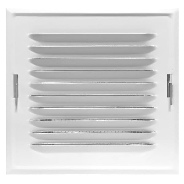 KRATKA WENTYLACYJNA METALOWA Z RAMKĄ MONTAŻOWĄ KOLOR BIAŁY 140×140 MM