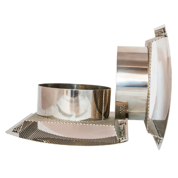 Ozdobna kratka nierdzewna wypukła zsiatką metalową orazkróćcem montażowym pasującym dootworu fi 100 mm. Wykonana wcałości zestali nierdzewnej.