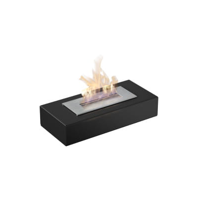 Wolnostojący biokominek o prostym, eleganckim kształcie. Przy sprzyjających warunkach atmosferycznych może być ozdobą tarasu lub ogrodu.
