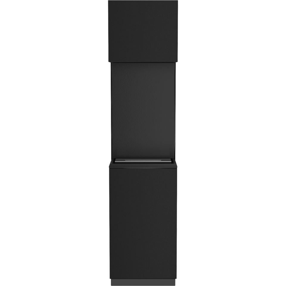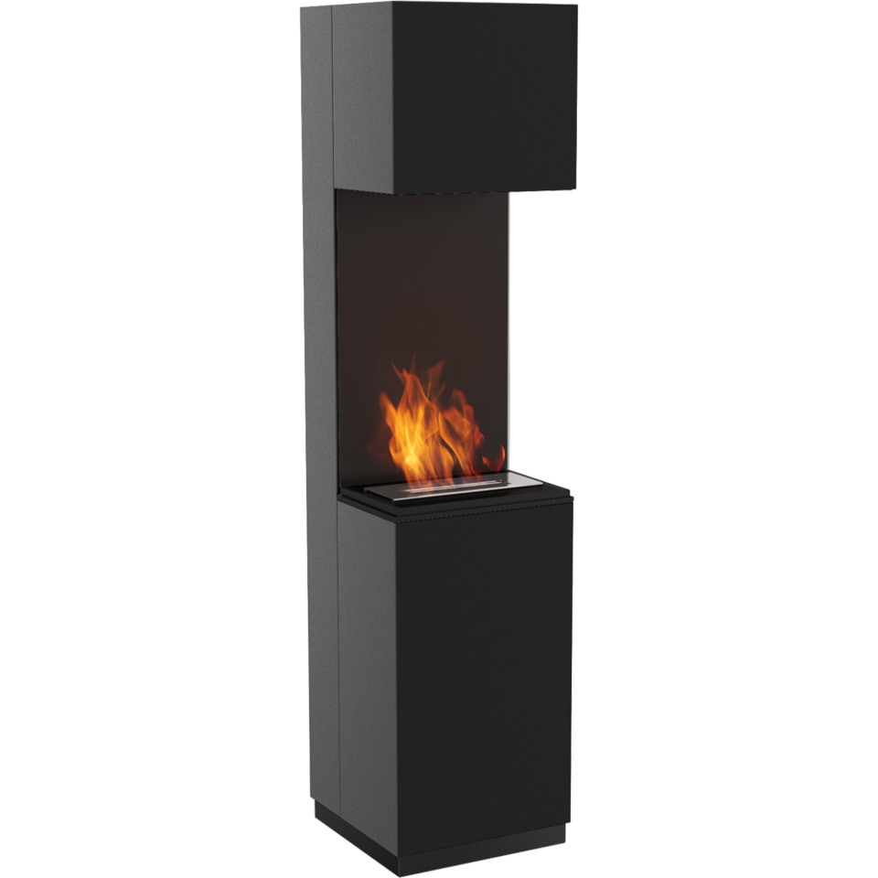 Wolnostojący biokominek o prostym, eleganckim kształcie. Przy sprzyjających warunkach atmosferycznych może być ozdobą tarasu lub ogrodu.