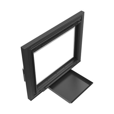 Stalowy front wkładu kominkowego, który można zamontować, np. jako zamknięcie otwartego do tej pory paleniska.