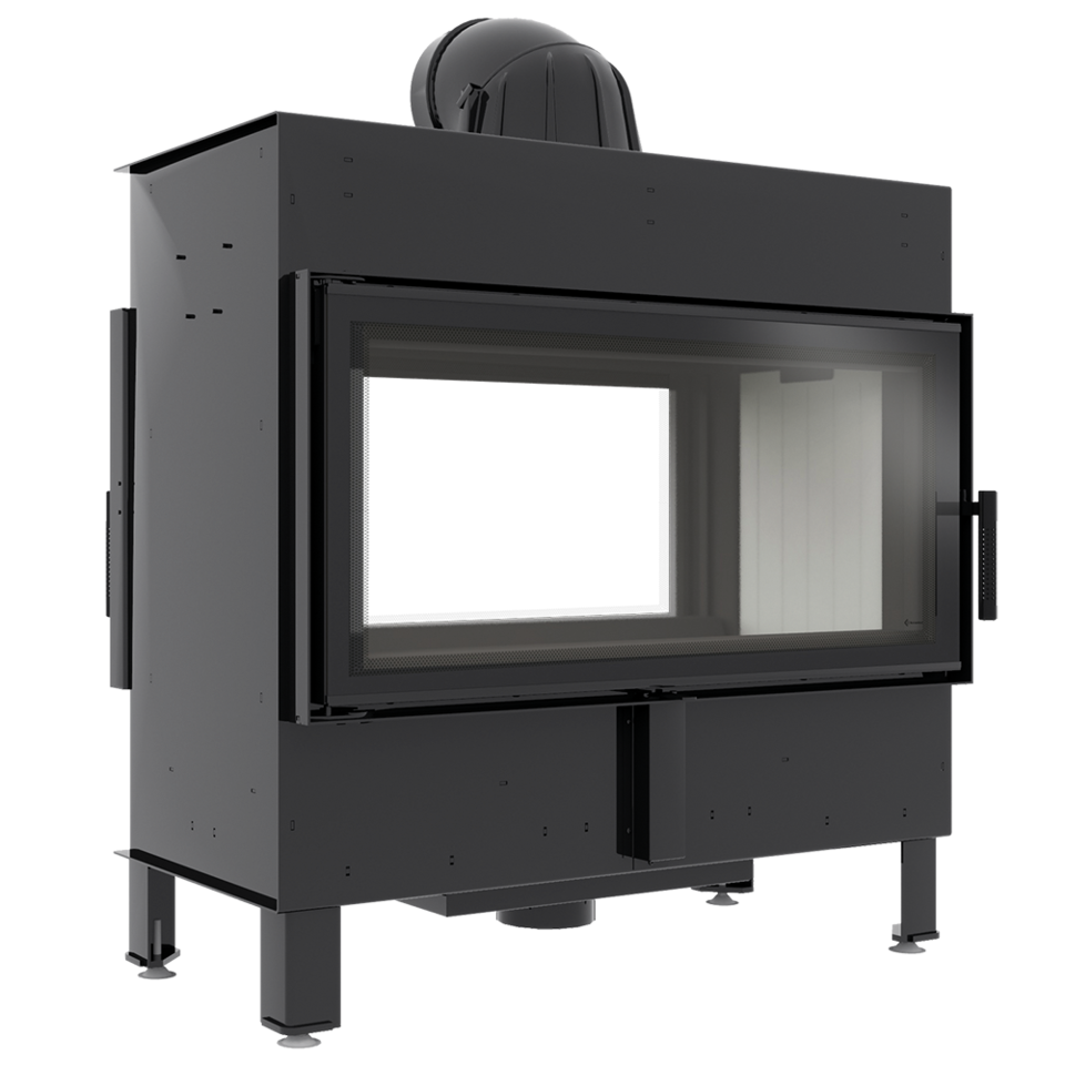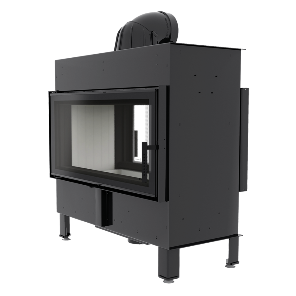 Dodatkowo we wkładzie zastosowany jest system czystej szyby (kurtyna powietrza), czyli powietrze dostarczane jest bezpośrednio na szybę poprzez system kanałów umieszczonych na bokach kominka. W ten sposób dostarczany jest tlen do górnej części komory spalania, w której następuje dopalanie gazów powstałych w procesie spalania drewna, co dodatkowo ogranicza emisję szkodliwego CO do atmosfery.