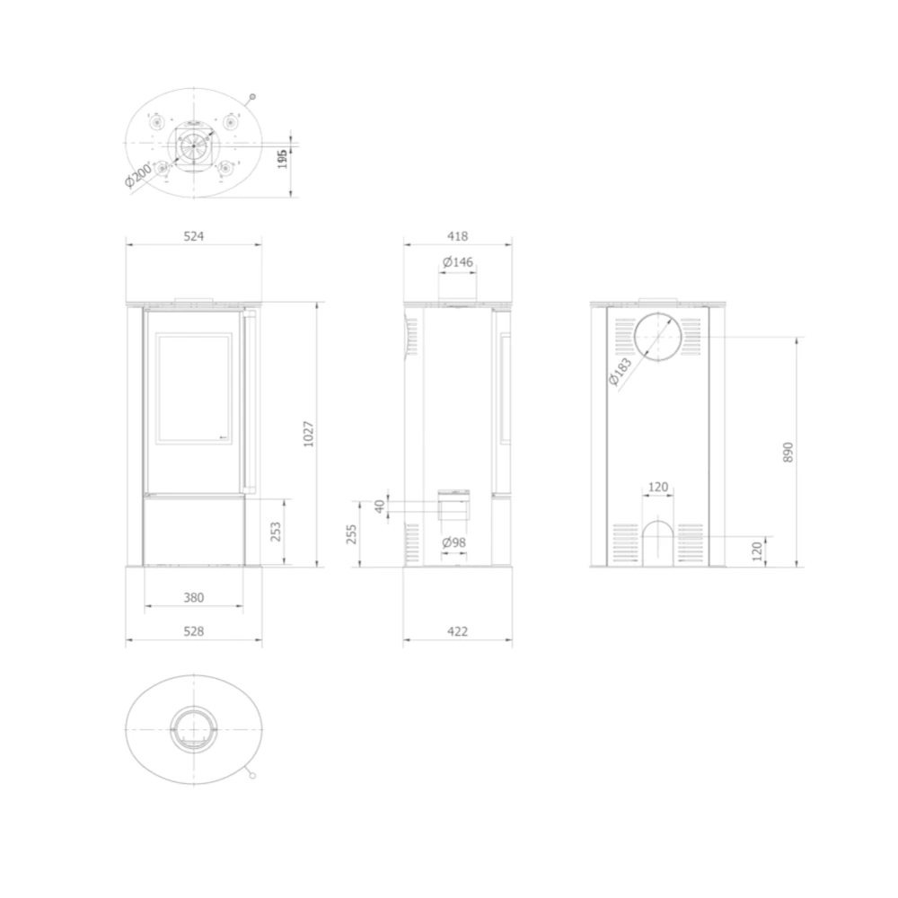 | Wyposażenie | Dolot Powietrza, Ozdobna Szyba Typu Glass, Popielnik, Wyłożenie Komory Spalania |