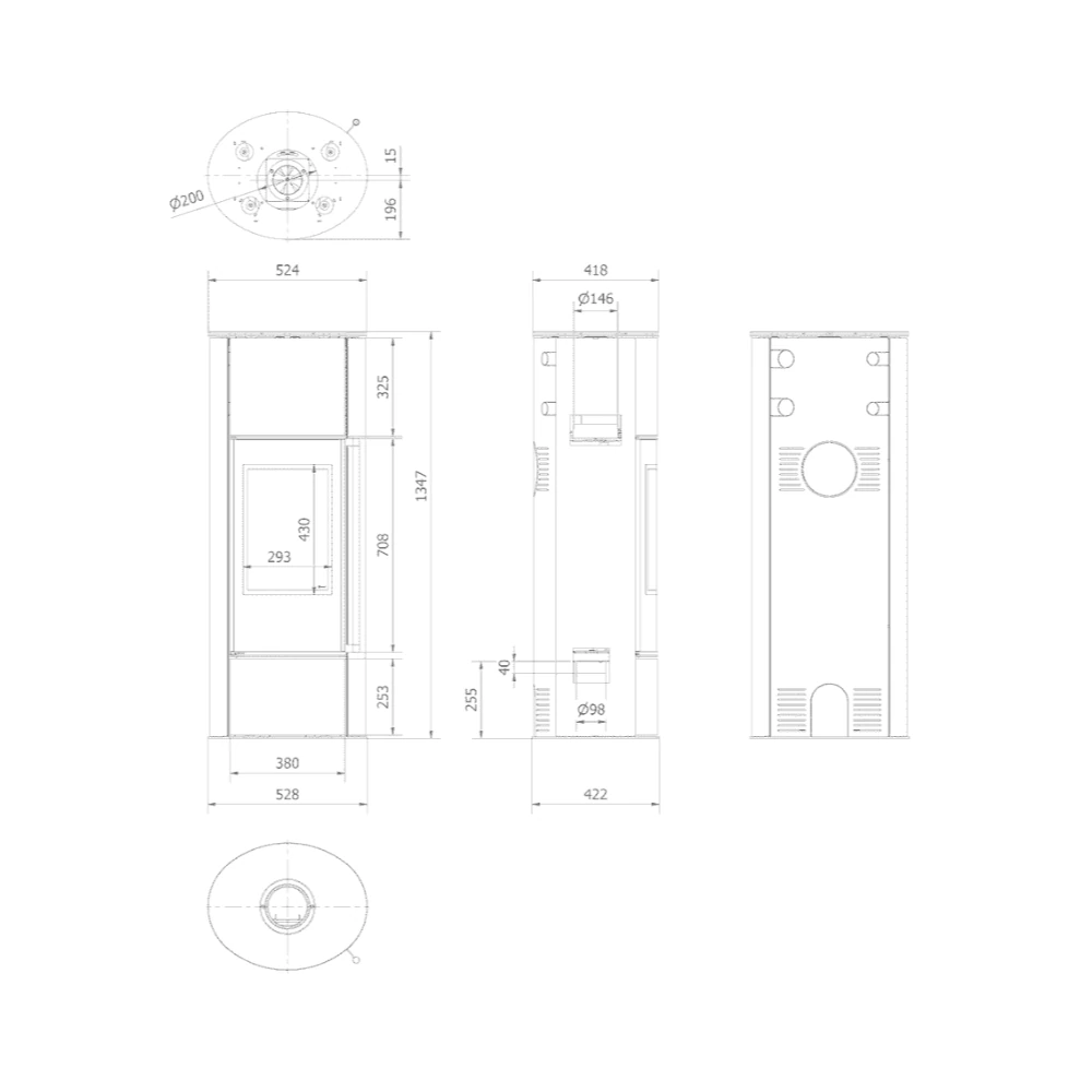 – ułatwiony montaż pieca dzięki otworowi w podstawie – Ø200mm,