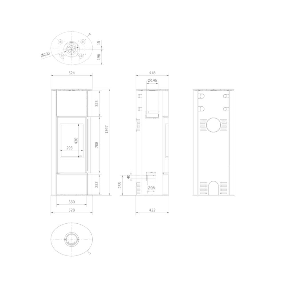 – ułatwiony montaż pieca dzięki otworowi w podstawie – Ø200mm,