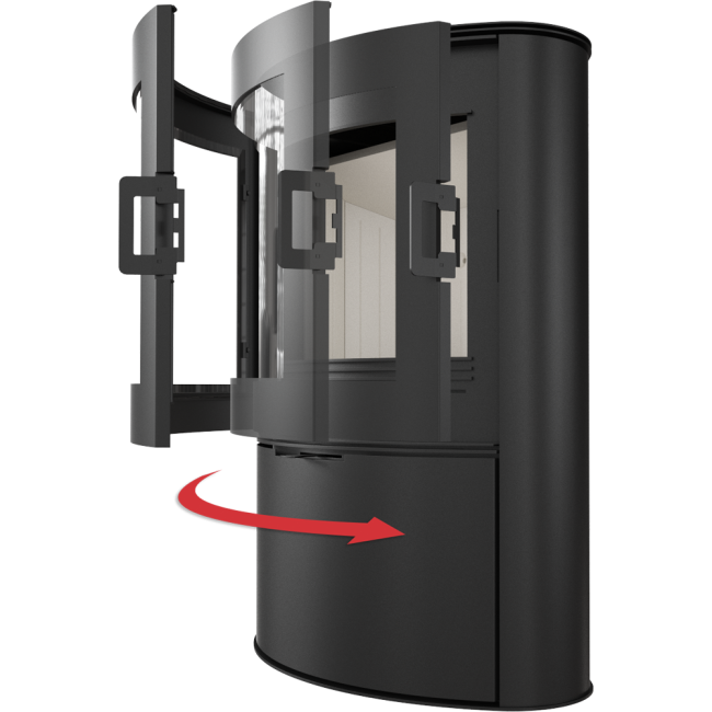 Uwydatnione piękno ognia dzięki zaokrąglonej szybie.