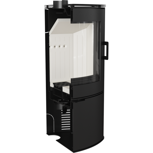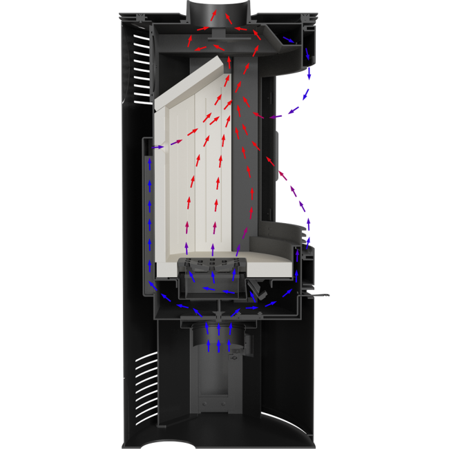 Potrójny system dopowietrzenia komory spalania: powietrze pierwotne – doprowadzone pod ruszt; powietrze wtórne dostarczane jest otworami w tylnej ścianie. Dodatkowo we wkładzie zastosowany jest system czystej szyby (kurtyna powietrza).