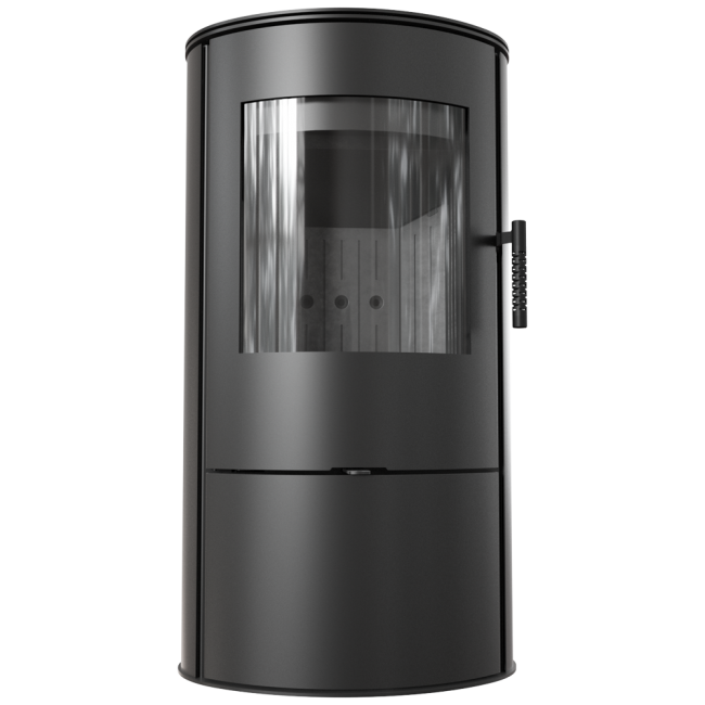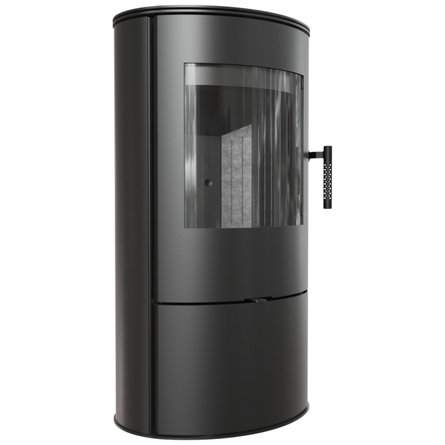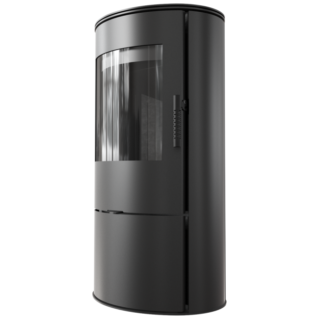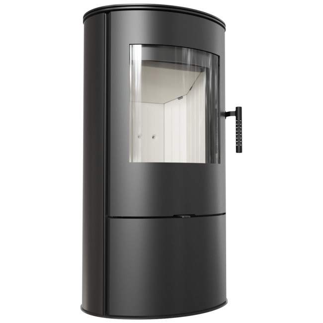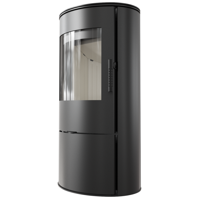 Uwydatnione piękno ognia dzięki zaokrąglonej szybie.