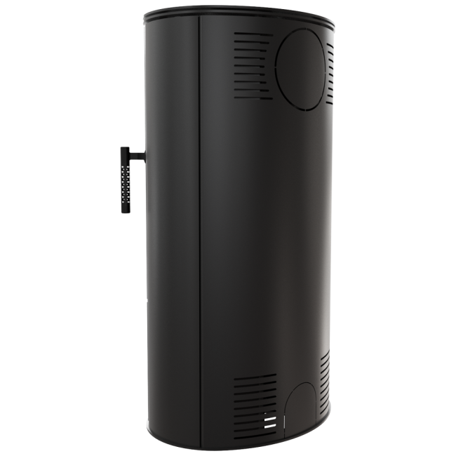 Wbudowany dolot powietrzaz zewnątrz fi 100, który zapewnia doprowadzenie świeżego powietrza do paleniska z zewnątrz budynku, co wpływa na lepsze spalanie i większy komfort użytkowania.
